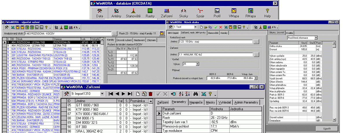 Programový systém WinNORA se skládá z datového subsystému a ze subsystému výpočetního. Datový subsystém poskytuje prostředky pro správu dat mikrovlnných objektů (antény, zařízení a pod.) a je implementován technikou datových kontejnerů. Výpočetní část implementuje základní výpočty nad daty v databázích datového subsystému - výpočet úrovňových poměrů skoku, výpočet kvality a výpočet rušení.