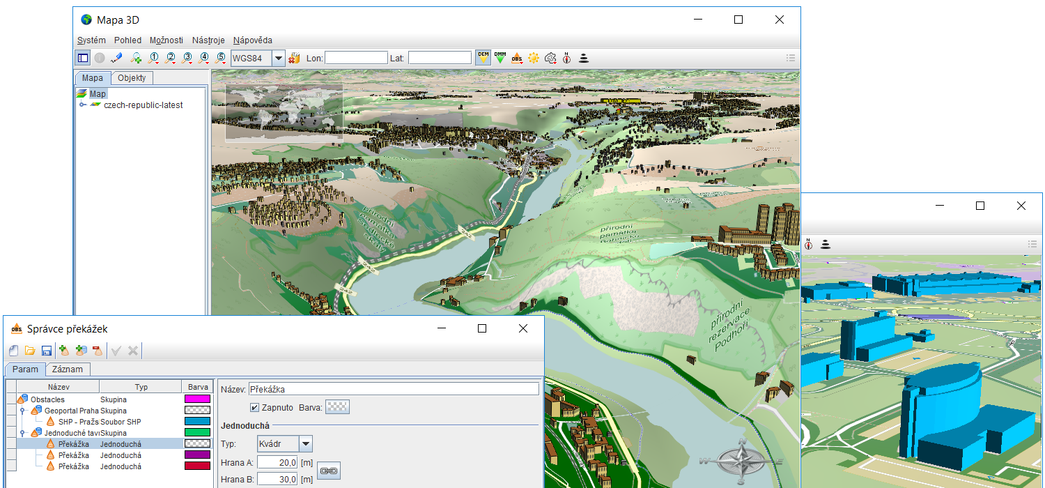 3D zobrazení map a dat s veškerými potřebnými možnostmi nastavení pohledu. Hlavní přínos je v detailních 3D pohledech ať už na terén nebo jednotlivé elementy zástavby.