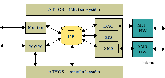 Telemetrický systém ATHOS je distribuované multiplatformní řešení pro nasazení telemetrických systémů, vycházející maximálně z možností současných technologií a komunikačních prostředků. Celý systém (implementace na měřící stanici) je řešen jako řada paralelních nezávislých procesů - subsystémů, které realizují jednotlivé činnosti a vzájemně komunikují pouze prostřednictvím systémové databáze. Jednotlivé subsystémy nebo jejich skupiny běží ve virtuálních prostorech Java VM, jsou od sebe zcela oddělené a vzájemně nezávislé, komunikující převážně pomocí front.
