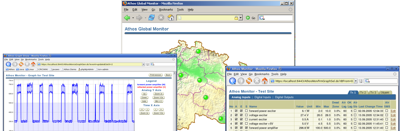 Pro rozsáhlejší konfigurace, kdy je realizován dohled nad více stanovišti, obsahuje ATHOS centrální monitor – WWW portál, poskytující přehledné agregované informace o stavu jednotlivých stanovišť a umožňuje snadnou navigaci mezi jednotlivými WWW stránkami stanovišť.